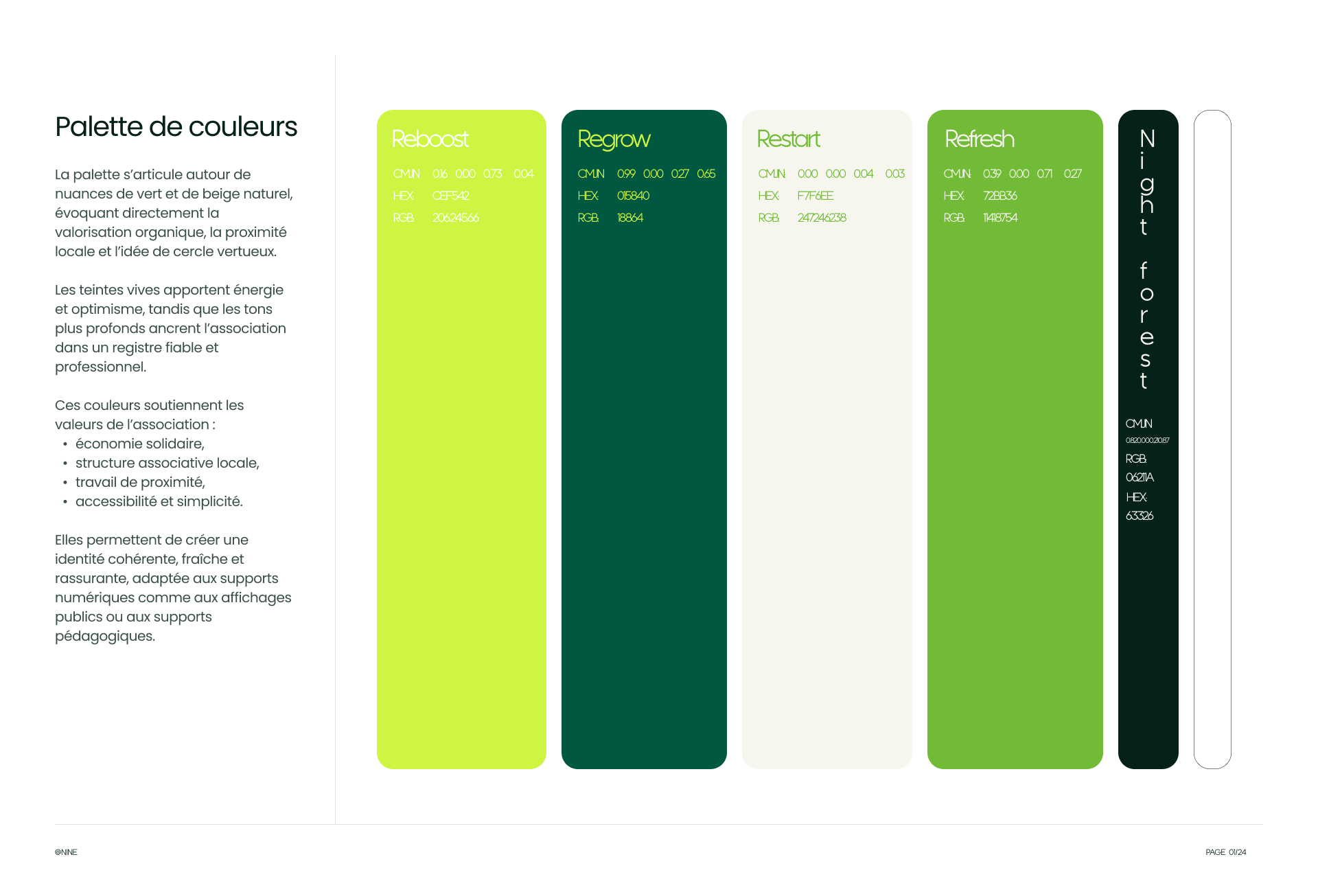 L’identité visuelle repose sur une palette chromatique contrastée et symbolique, articulée autour de deux teintes phares : le vert “Reboost”, symbole d’énergie et de renouveau, et le vert “Regrow”, qui ancre l’association dans un registre de fiabilité et de profondeur organique. Ces nuances, associées à des formes fluides évoquant les cycles de la nature, créent une identité cohérente et rassurante. Ce choix graphique permet de sortir de l’image austère du déchet pour proposer une vision optimiste et moderne de l’économie circulaire, adaptée aussi bien aux supports numériques qu’aux affichages pédagogiques.