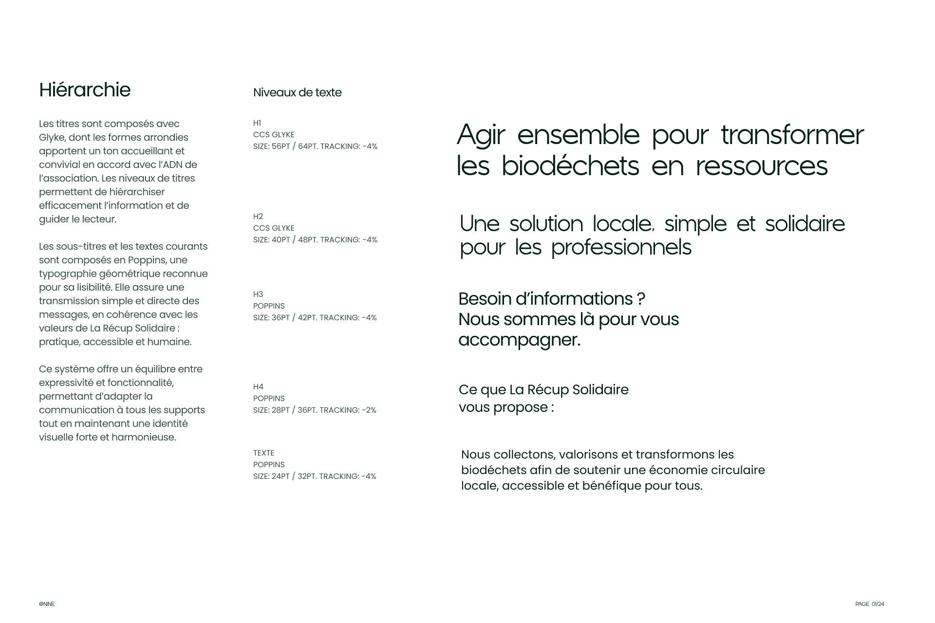 Au-delà de l’esthétique, ce travail reflète une stratégie de communication globale visant à simplifier la compréhension des enjeux liés au tri à la source pour les professionnels (santé, restauration, collectivités). En combinant une typographie moderne à une structure de contenu rigoureuse, le projet rend le processus de valorisation tangible et engageant.